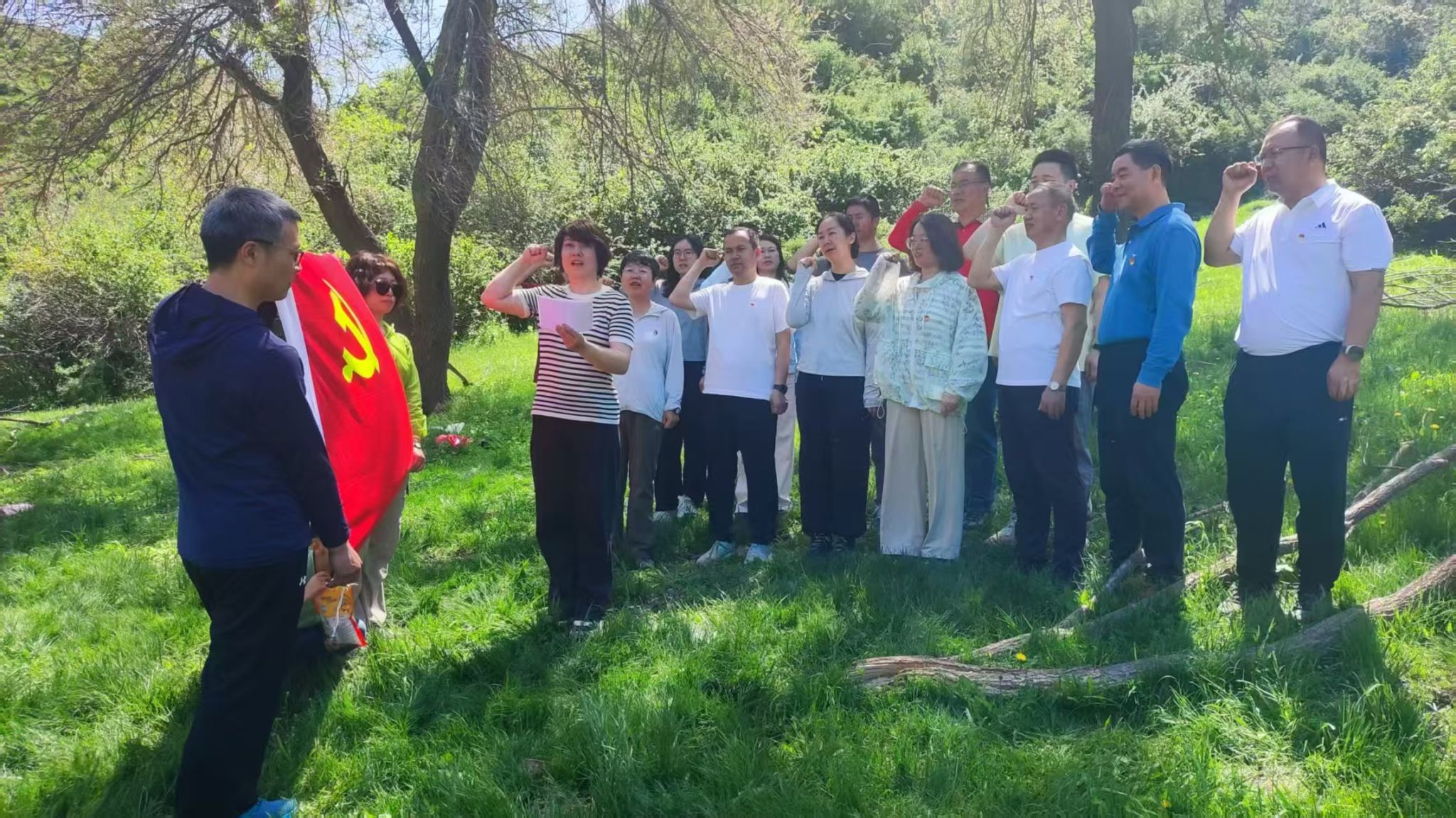本次活动以党性教育与生态文明实践融合为主线。全体教师党员在党支部书记刘阳同志带领全体党员面向党旗重温入党誓词,铿锵誓言回荡山间,进一步筑牢理想信念根基。