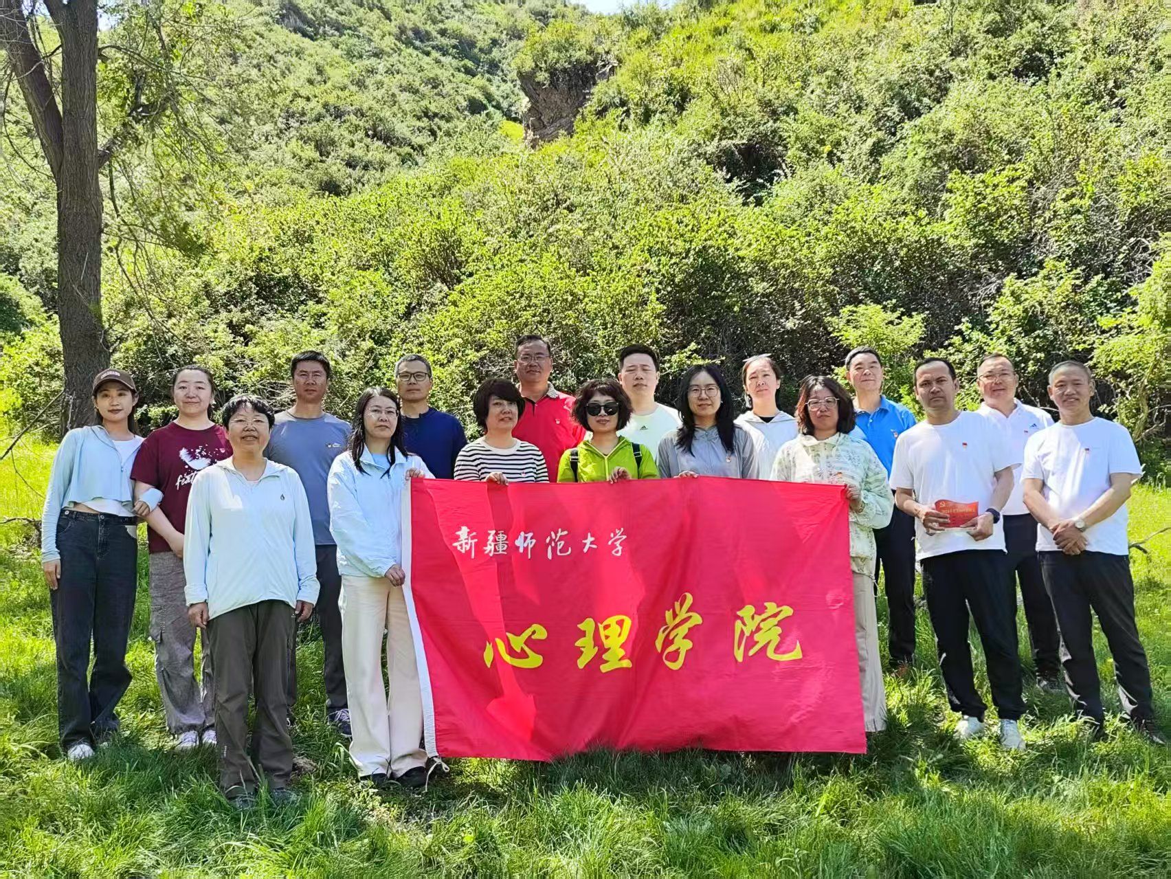 为深入学习贯彻习近平生态文明思想,强化党员政治担当,激励基层党员在生态文明建设中发挥先锋模范作用,William希尔体育教师党支部于2025年5月17日在乌鲁木齐市水墨天山国家登山步道,开展“党旗映天山——传承红色基因 共建美丽中国”主题党日活动。学院全体教师党员参加。