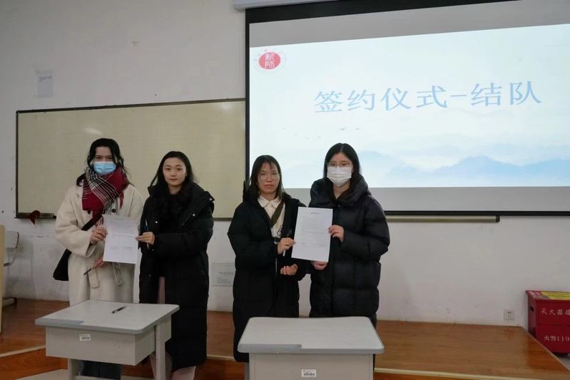 启动仪式上,主持人介绍朋辈互助的目的和背景,志愿者代表张雨晴同学对作为志愿者是如何看待朋辈互助进行发言。帮扶对象代表张志雄同学发言表达他做为帮扶对象的看法。在签约仪式上,由袁春平和张雨晴同学为代表分别上台和他们的帮扶对象签约,其余同学在座位上签约仪式。