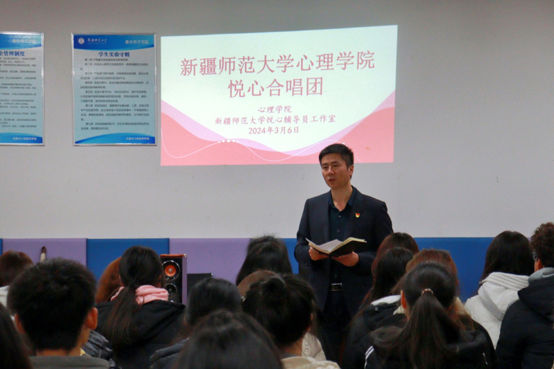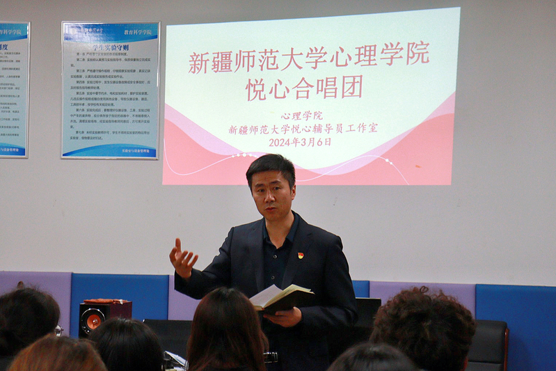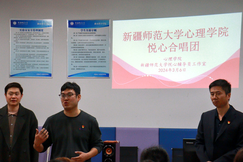 开幕式上,李小波书记从心理学专业的角度出发,为同学们解读了乐音对人们情绪的重要性,表示悦心合唱团的成立就是为同学们提供一个展现自我的平台,鼓励大家要勇于走到台前展现自我。同时,李小波书记就大学生职业生涯发展等问题同大家进行了深度交流,进一步帮助学生树立远大理想。排练阶段,毛源林老师从基础的发声、练气等方面入手,传授同学们相关技巧,并带领大家初步领略合唱的魅力。
