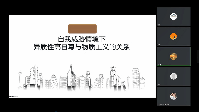 闻素霞教授从不同自尊者自传体记忆的特点、自我威胁情境下异质性高自尊与物质主义的关系和自我建构,对大学生面孔识别整体加工效应的影响三个方面,研究详细介绍了自我连接学习范式、自我威胁情景的操作和安全高自尊和脆弱高自尊的区别及不同自尊类型对于知觉认知与社会认知的影响。讲座启示广大师生不仅要要理解脆弱高自尊者的高物质主义背后的心理需求,并树立正确的意识:提高自主性, 增强自身能力, 发展良好的社会关系。还要将威胁情境视为一种自我成长的机遇, 通过向内接纳自我, 建立良好的积极自我观而使自己从物质主义的影响中解脱出来。