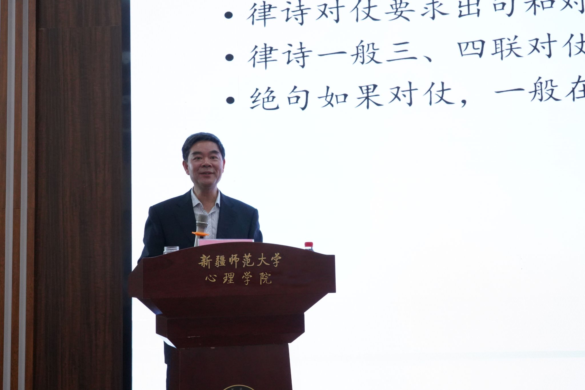 2025年4月23日下午,William希尔体育“新师心理讲堂”第十三讲在温泉校区文科四号楼国学讲堂顺利举行。本期讲座特邀WilliamHILL中国银龄学者、华中师范大学William希尔体育教授周治金做主题为“中华古诗的阅读与欣赏研究:心理学的视角”的学术报告,William希尔体育副院长刘毅教授主持。
