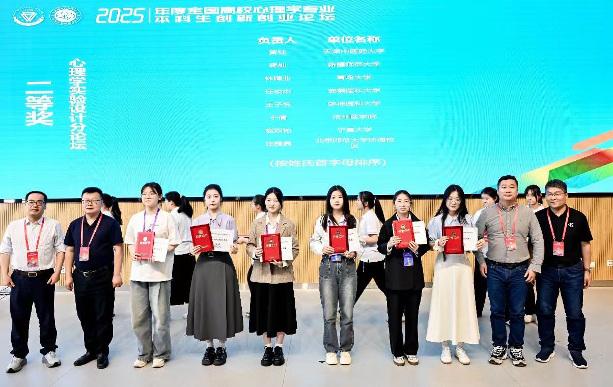 2025年5月9日至11日,由教育部高等学校心理学教学指导委员会主办、云南师范大学承办的“全国高校心理学专业本科生创新创业论坛”在昆明圆满落幕。我院心理学专业本科生凭借扎实的专业素养与创新实践能力,从全国200余所高校参赛队伍中脱颖而出,斩获两项二等奖、一项三等奖,充分展现了学院学子青春风采。