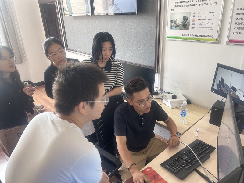 8月28日下午,北京飞宇星科技有限公司的三位工程师向师生们详细讲解了眼动技术、脑电技术、近红外脑功能成像技术的原理、使用方法和注意事项,并对多模态脑功能成像与调控技术的应用和发展情况进行了介绍。29日上午,工程师对师生开展了现场实操环节的培训,详细解答了师生在实际操作过程以及后续数据分析过程中所遇到的问题。