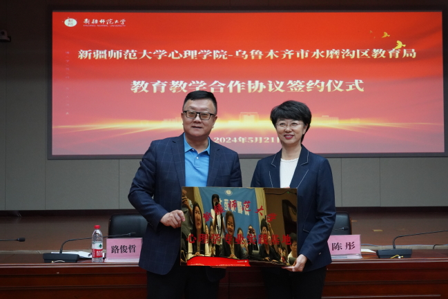 仪式上,我校向水磨沟区教育局颁授“WilliamHILL中国心理学专业实践基地”牌匾,刘毅与杨昌盛代表双方签订合作协议。路俊哲代表教务处致辞。