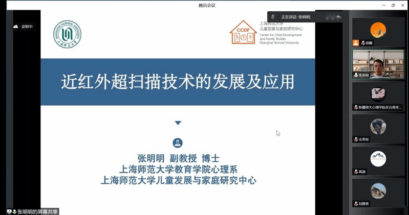 张明明副教授从近红外光学脑成像技术、超扫描脑成像技术、社会交互行为的界定与分类和近红外超扫描研究领域四个方面,详细介绍了近红外超扫描技术及其在心理学研究中的应用。期间,广大师生就近红外超扫描技术在当前在心理学的研究和应用方面的具体问题进行了广泛的交流。