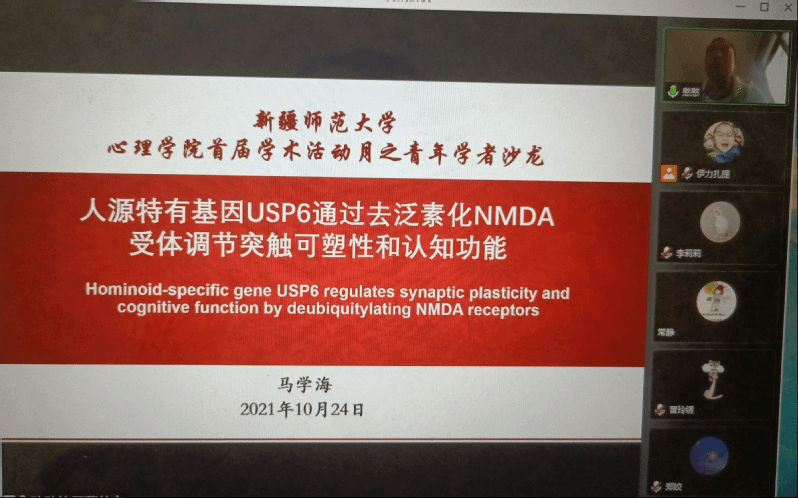 10月24日星期天上午,青年学者沙龙第三场基础心理学方向的学术骨干马学海博士和刘贵雄博士分享优秀成果。马学海博士以《人类持有基因USP6通过去泛素化NMDA受体调节突触可塑性和认知功能》为题,为学院师生作了学术讲座。马学海博士对自己的最新研究成果进行了全面介绍,对主持课题的研究思想和方法进行了深入解析,还与师生们围绕研究伦理等内容进行了互动交流。紧接着,基础心理学方向的学术骨干刘贵雄副教授以《学术论文的构思与写作》为题作了学术报告。他围绕“problem”和“question”的区别,给师生们讲解如何提出问题、如何提出好的问题,再结合自己申报国家课题和在国内外核心期刊上发表的学术论文的经验,讲解如何写好学术论文的引言、方法与结果、讨论与结论部分。通过以上两场讲座,师生们对科学研究以及学术论文的构思与撰写方面有了更深入的理解,在研究问题的确定、权威期刊上发表论文时注意的事项等方面有了更多的认识。